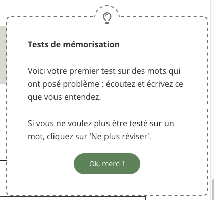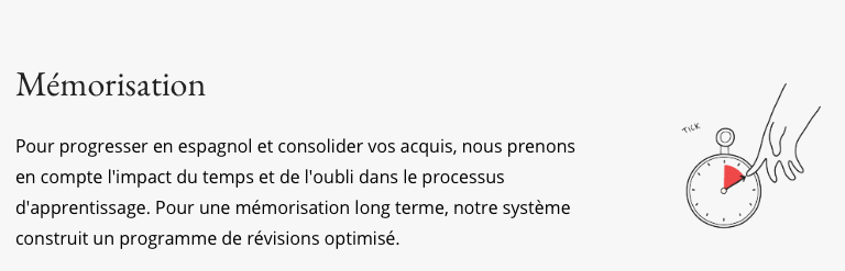 En plus de cet atout, l’application utilise le principe de rĂ©pĂ©tition espacĂ©e, pour une mĂ©morisation sĂ»re, Ă la fois pour le vocabulaire et la grammaire