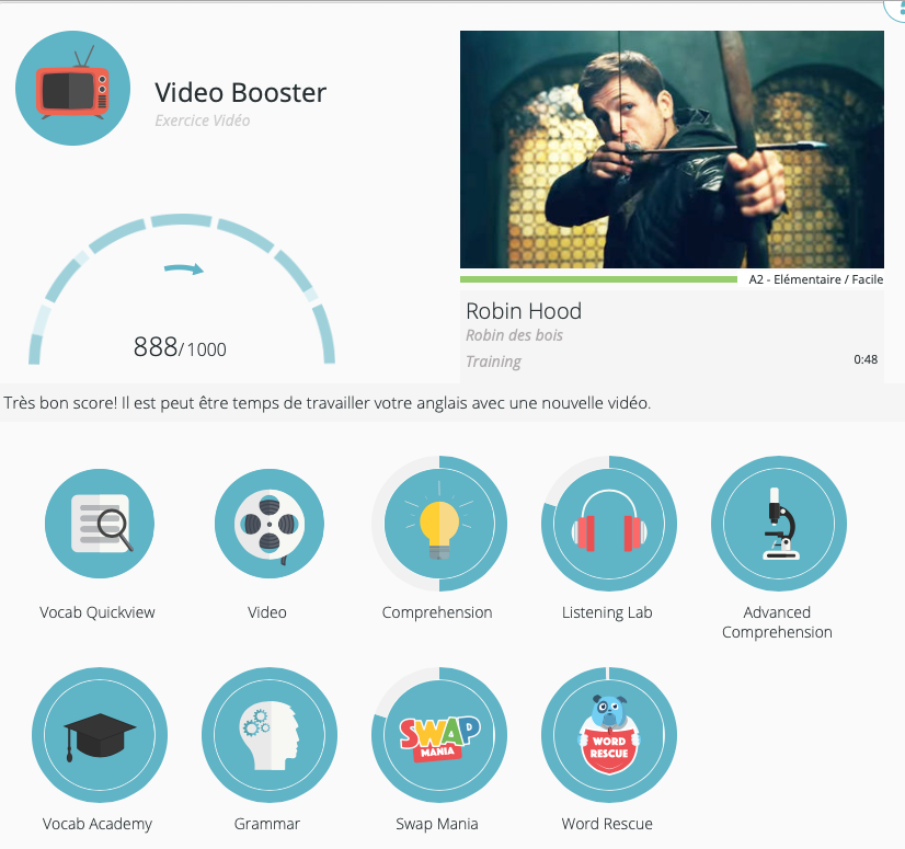 - Le travail complet du vocabulaire de la vidéo avec ses outils de mémorisation