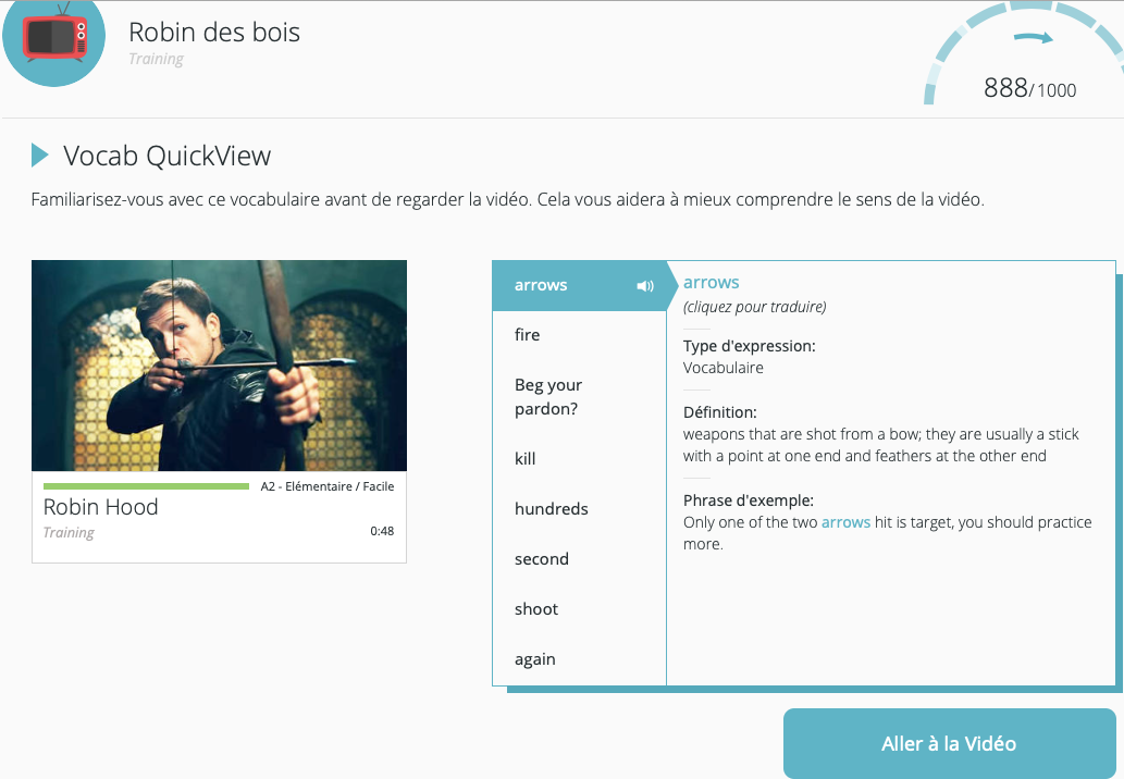 La vidĂ©o bĂ©nĂ©ficie du lexique Ă connaĂźtre, d’une traduction et de phrases contextuelles. Un truc bien pensĂ© et construitâŻ!