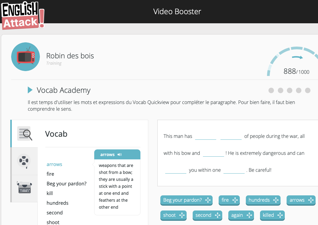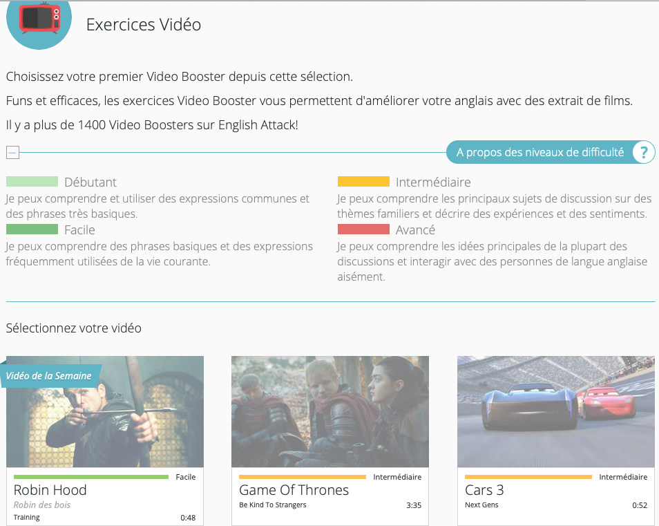 Quioz utilise le programme de Lingua Attack qui est, sur la base d’une vidĂ©o « booster », une approche directe de la langue anglaise avec diffĂ©rents exercices, chacun permettant de travailler un aspect de la langue. Nous rĂ©digeons donc cet article pour les diffĂ©rents produits malgrĂ© des diffĂ©rences de prĂ©sentation et de contenus.