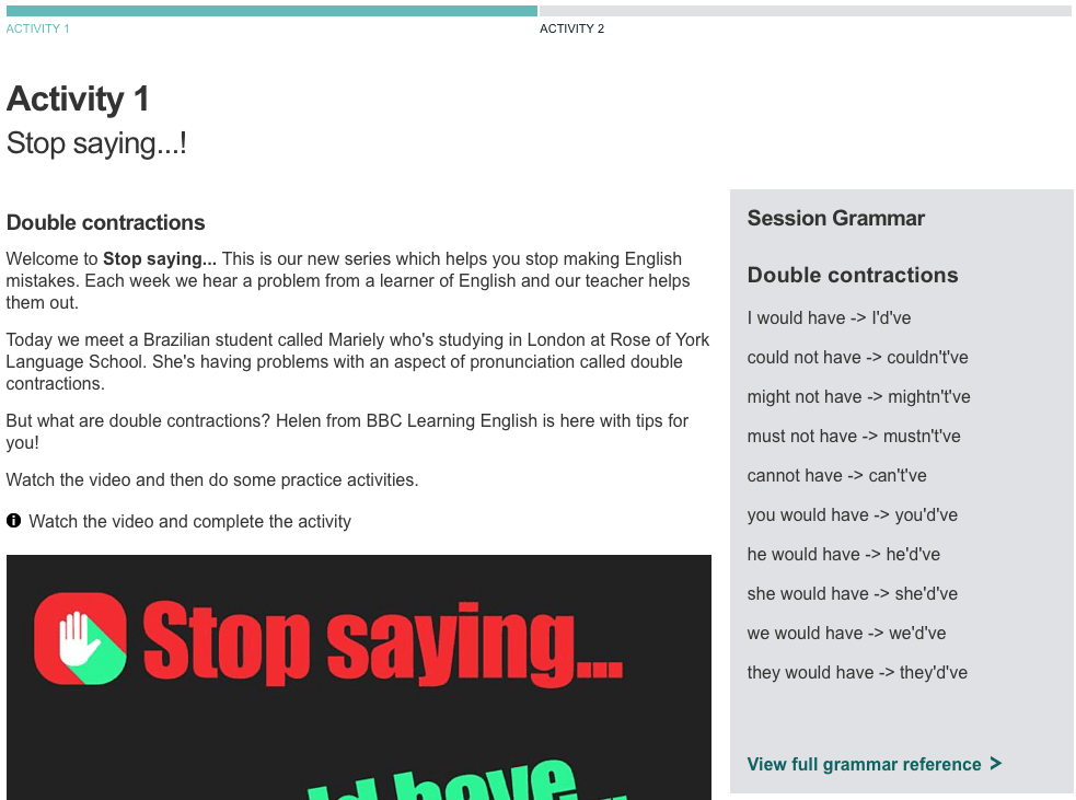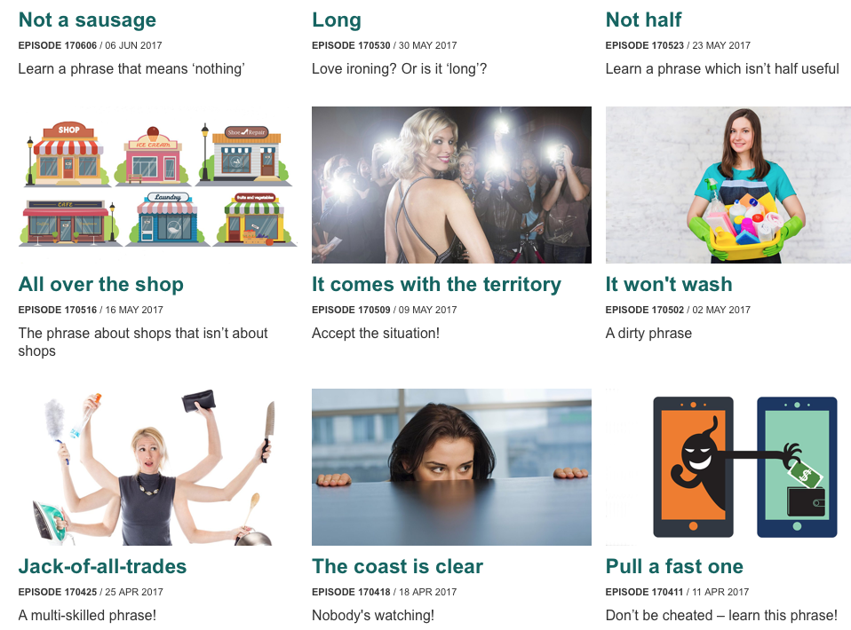 BBC Learning English est avant tout une trÚs belle base de ressources diverses que ce soient des audios, des PDF, des vidéos, des podcasts, des histoires ou encore des exercices. En réalité, un grand bric-à -brac dans lequel il faut rechercher le produit qui vous intéresse.