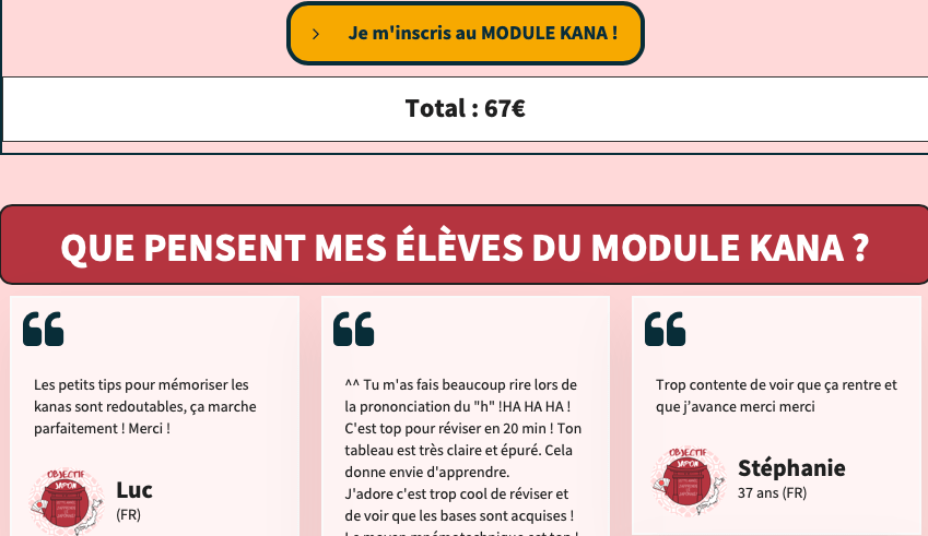 Il faut s’inscrire pour les dĂ©couvrir… Facile avec le module « kanas », en attente avec « objectif japon ». Moyen, on aimerait les connaĂźtre avant de se prĂ©inscrire… Les forfaits sont par contre affichĂ©s pour d’autres cours.