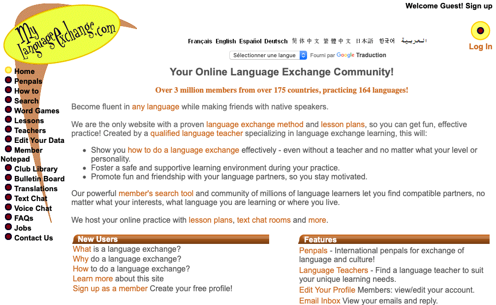 - Citons Ă©galement « un grand ancien » (dont le design…) de l’Ă©change linguistique mylanguageexchange