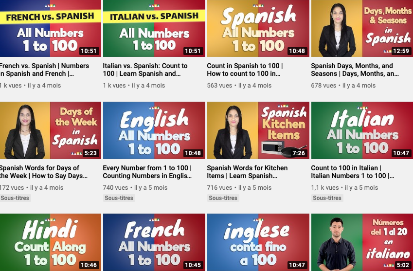Des vidĂ©os spĂ©cifiques ont pour but un enseignement (disons dĂ©couverte…) Claires, simples et gratuites, elles peuvent servir de supports pour apprendre du vocabulaire. Visuelles et trĂšs bien faites, elles plairont Ă une nouvelle gĂ©nĂ©ration d’apprenants, l’ancienne utilisera celle plus rapide de la lecture de lexiques conçus pour mais certes moins agrĂ©ableâŻ! Notons qu’avec le temps, la prĂ©sentation Youtube sera de moins en moins pratique en raison du nombre de vidĂ©os affichĂ©es.