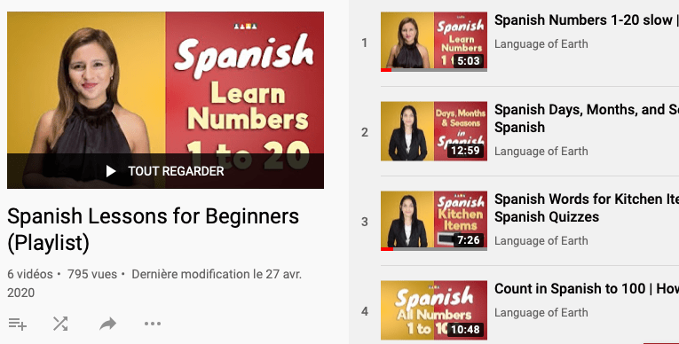 Une playlist bien pratique pour suivre les leçons