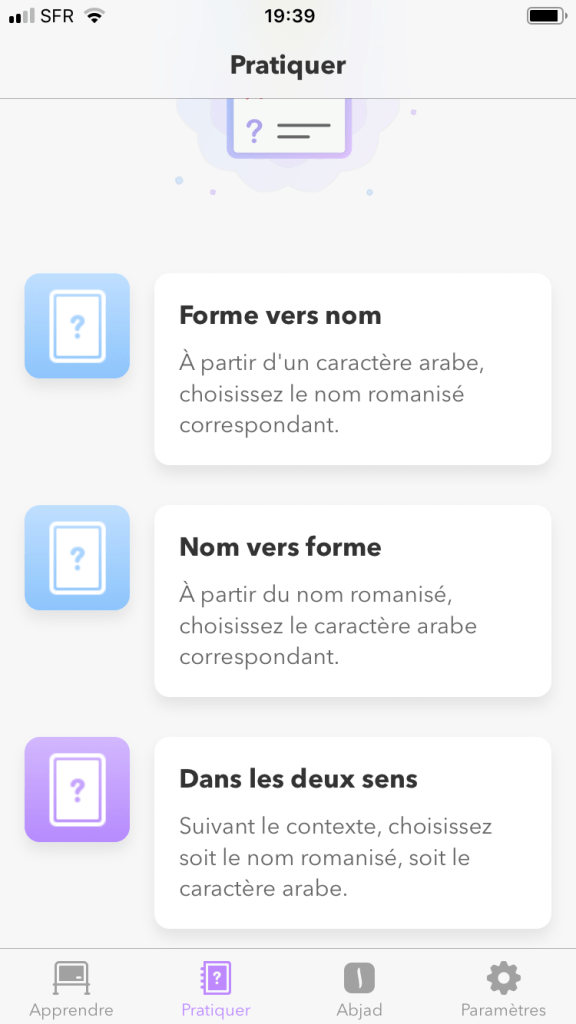 Notons qu’une fois franchie cette étape, celle de l’alphabet, plus rien ne vous semblera impossible pour apprendre l’arabe ! D’où l’importance de cette application dédiée à ce seul aspect de la langue…
