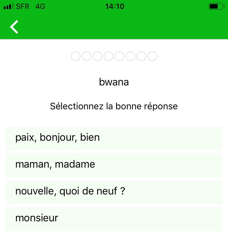 Une application qui cible les langues africaines pour une initiation facile et dĂ©contractĂ©e d’une base rĂ©duite, mais suffisante de vocabulaire pour dĂ©couvrir et commencer Ă utiliser ces langages. Wolof, swahili et bambara au menuâŻ!