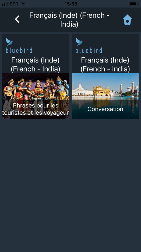 Bluebird, outil de dĂ©couverte ou de loisirs. Le nombre impressionnant de leçons ne suffit pas Ă combler un manque de qualitĂ© pour vraiment apprendre une langue. C’est, par contre, un bon complĂ©ment qui permet d’acquĂ©rir du vocabulaire et un premier accĂšs Ă de multiples langues avec sa partie gratuite. Utile et prĂ©cieux aussi la possibilitĂ© de travailler les accentsâŻ! Une localisation aussi Ă©tendue est une caractĂ©ristique innovante et majeure que peu d’applis ont osĂ© mĂȘme si la tendance est dĂ©jĂ prĂ©sente et sera bientĂŽt incontournable… Le marketing est toutefois mal ficelĂ©, car dans beaucoup de pays visĂ©s, 15 euros par mois est un budget plutĂŽt inadaptĂ© (dĂ©jĂ en France).