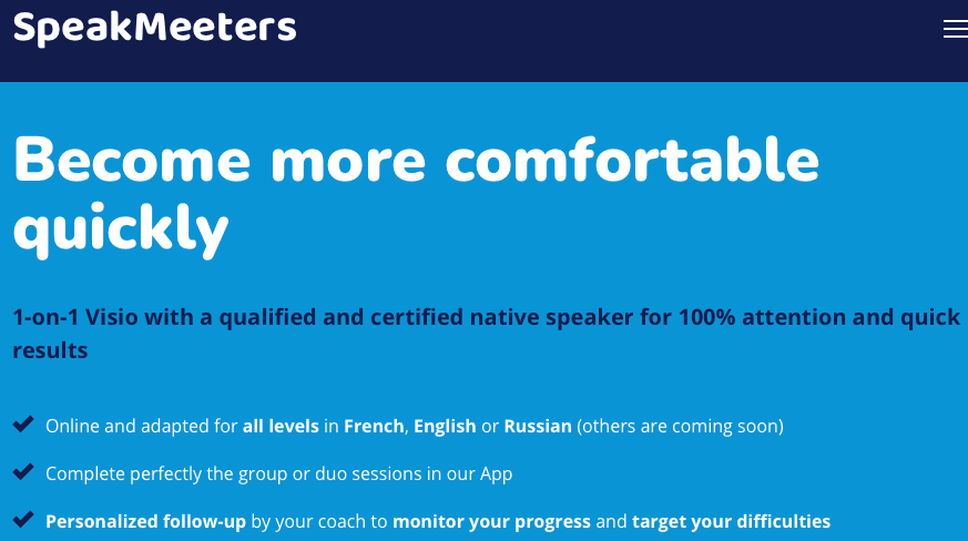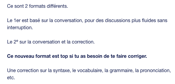 Une excellente formule avec un produit Ă©laborĂ©, ergonomique et utile pour commencer Ă parler, mais aussi pour continuerâŻ! ExpĂ©rimentĂ©s, ils ont su proposer un service pratique, direct et efficace. FacilitĂ© de trouver un groupe, de s’inscrire et de se lancer. Les prix sont rĂ©alistes et attractifs (dans la fourchette basse) et permettent le passage Ă l’acte indispensable aux apprenants de langues Ă©trangĂšres. Pour les hĂ©sitants, ils ne seront plus seuls et aimerons la sĂ©curitĂ© et le relatif « anonymat » d’un groupe.
