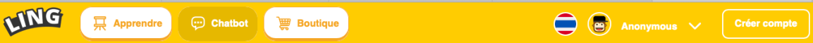 Une barre principale classique avec « apprendre », les cours, le chatbot (en fait les leçons de conversations), la boutique pour les abonnements puis l’affiche de la langue Ă©tudiĂ©e et enfin votre compte.