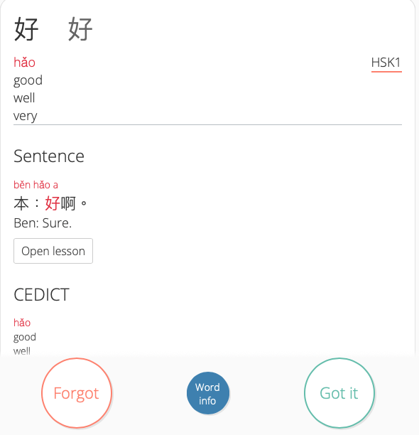 - Afficher le niveau HSK du mot (couleurs spécifiques)