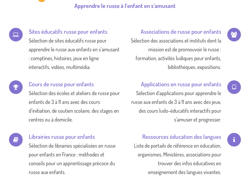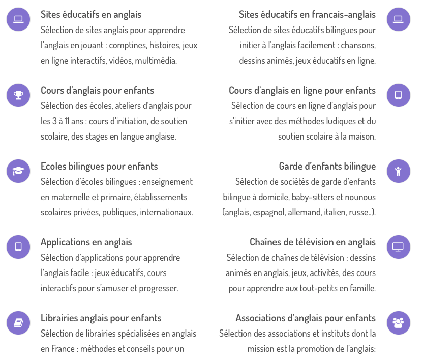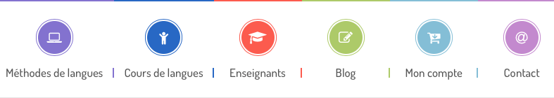 Joli visuel clair, mais dont l’un des ronds mĂ©rite une explication, les cours de languesâŻ! Si les produits proposĂ©s (un peu partout sur le site) sont bien rĂ©pertoriĂ©s dans « mĂ©thodes de langues », vous trouverez Ă « cours de langues » en fait des ressources gratuites pour trouver de vrais cours et des informations multiples.