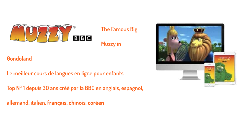 3 produits phares en ligne: DinoLingo, Kokora et Muzzy