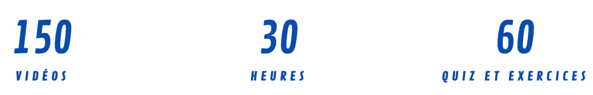 Les 30 heures affichĂ©es semblent ĂȘtre le cumul du temps des vidĂ©os. Il est trĂšs trompeur, car la rĂ©alitĂ© est qu’une bonne trentaine de minutes par vidĂ©o est au moins nĂ©cessaire pour faire la leçon, la revoir Ă l’aide du rĂ©sumĂ© et terminer les exercices… Faites le calcul !