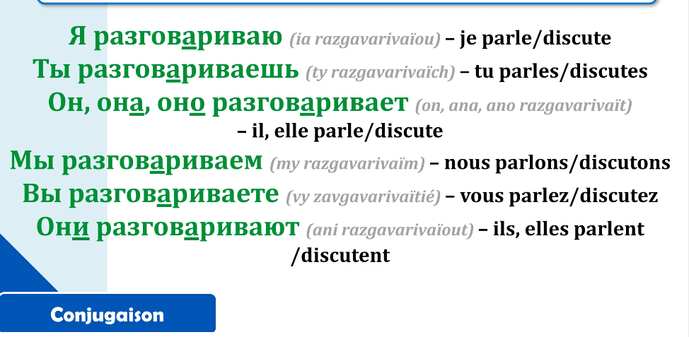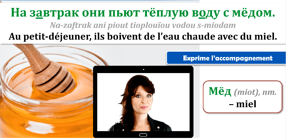 Pour mieux comprendre la construction de la phrase en russe, une note indique l’ordre en langue française comme dans cet exemple (une aide prĂ©cieuse) :