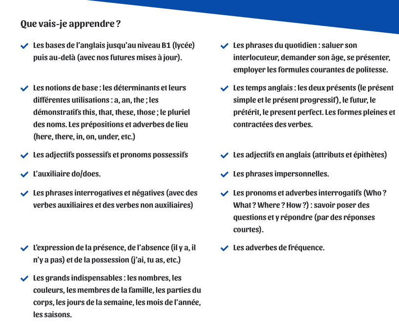 Des packs dédiés ponctuent le programme à ajouter aux mots et phrases rencontrés avec les cours de grammaire.