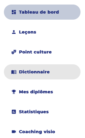 ĂlĂ©ment essentiel, cette tour de contrĂŽle vous permet en un clin d’Ćil de visualiser toute votre activitĂ©. SimplicitĂ© et rapiditĂ©, c’est une partie trĂšs rĂ©ussie du site qui permet d’accĂ©der Ă toutes les fonctions (pas d’usine Ă gaz comme beaucoup d’autres). Un dĂ©faut toutefois : l’application appelle « leçons » celles de grammaire. Une confusion alors avec les « leçons » de vocabulaire considĂ©rĂ©es ici comme « jeux » d’oĂč le bouton « jouons » dans le menu. Pour plus de clartĂ©, celui-ci devrait apparaĂźtre dans le tableau au-dessus de « leçon »…