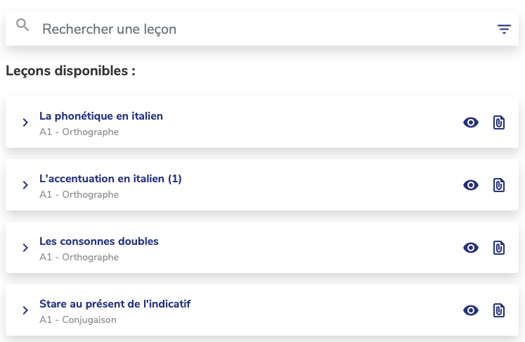 Des trucs comme l’accĂšs direct Ă votre niveau aprĂšs avoir fait le test (ce qui vous Ă©vite de dĂ©marrer depuis « bonjour »), des rĂ©visions personnalisĂ©es qui utilisent les modes rĂ©pĂ©tition espacĂ©e et boĂźte de Leitner (c’est-Ă -dire qu’elle agit de façon dynamique pour mettre en avant les mots moins mĂ©morisĂ©s), du coaching et un accĂšs aux niveaux thĂ©matiques professionnels.