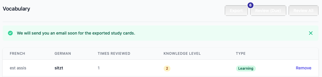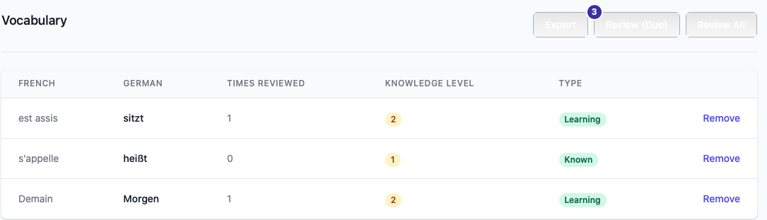 - Une gestion agréable de sa base de vocabulaire