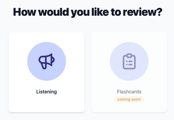 Une rĂ©vision par l’Ă©coute ou le flashcard (en dĂ©veloppement) :