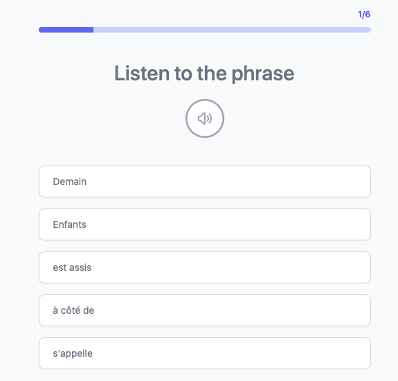L’Ă©coute est sous forme de quizz pour savoir si vous avez bien compris et enregistrĂ© les mots rencontrĂ©s :