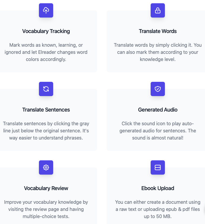 Une appli simplissime qui a le mĂ©rite de nous faire redĂ©couvrir le travail sur texte de maniĂšre plaisante. TrĂšs facile, presque un jeu, tout le monde peut l’essayerâŻ! Ses importations permettent aussi de cibler votre travail ou Ă©tudier un E-book. Il reprend le concept de base de LingQ.