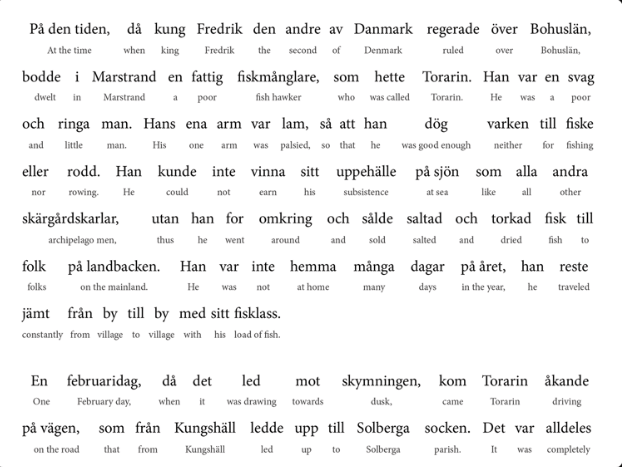 Il est trĂšs simple. Un livre (souvent classique) est Ă©ditĂ© sous forme digitale et permet une lecture normale et plus ergonomique que les doubles colonnes habituelles d’applis bilingues. Ici, le regard descend juste en dessous pour lire la traduction du mot. On accumule ainsi rapidement une sĂ©rie de mots qui permettent la comprĂ©hension « volontaire » du texte (et non pas prĂ©-machĂ© avec une traduction complĂšte).