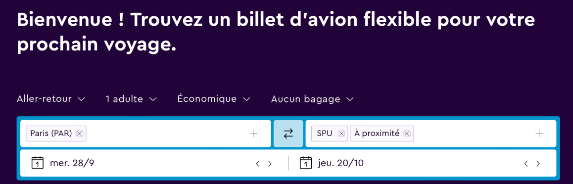 Une variante, le lien qui vous mĂšne sur l’interface « oĂč voulez-vous aller ? »