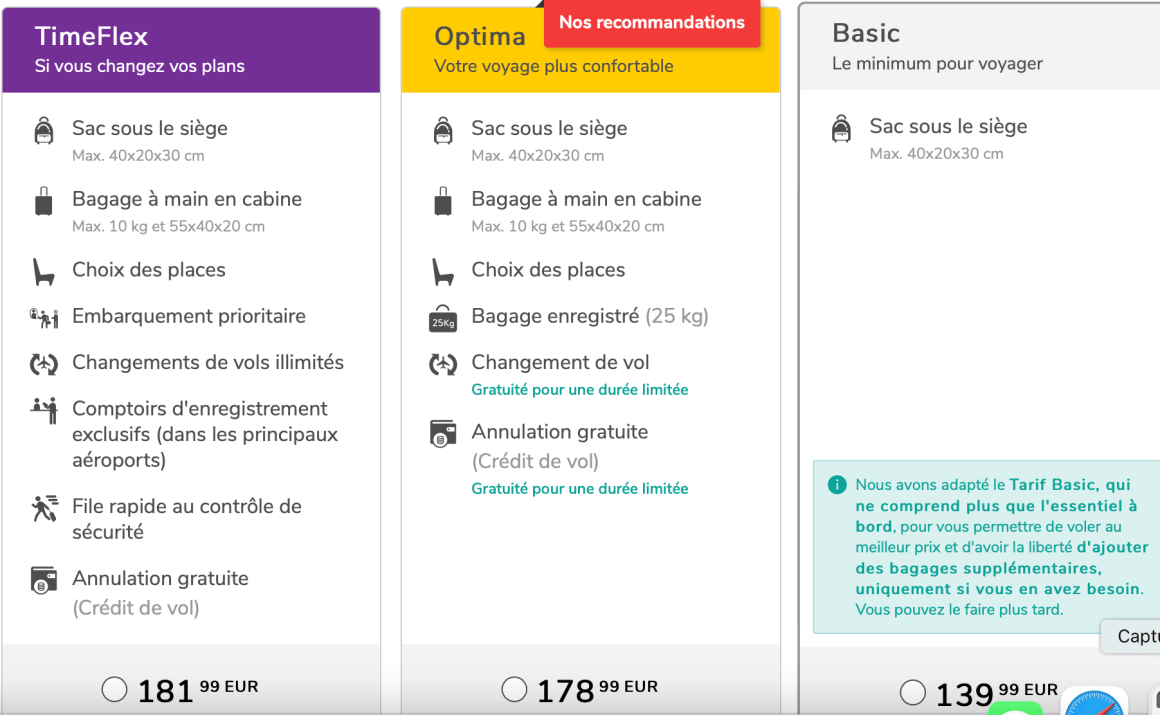 L’idĂ©al est de partir sans rien mĂȘme pas un Ă©tui Ă lunettes (on ne sait jamais…) Les tarifs de base sont d’ailleurs conçus Ă priori pour cette clientĂšle (fantĂŽme une fois encore, qui part en vacances avec un mini bagage Ă main?) mais servent surtout en fait pour faire de la pub attractive !