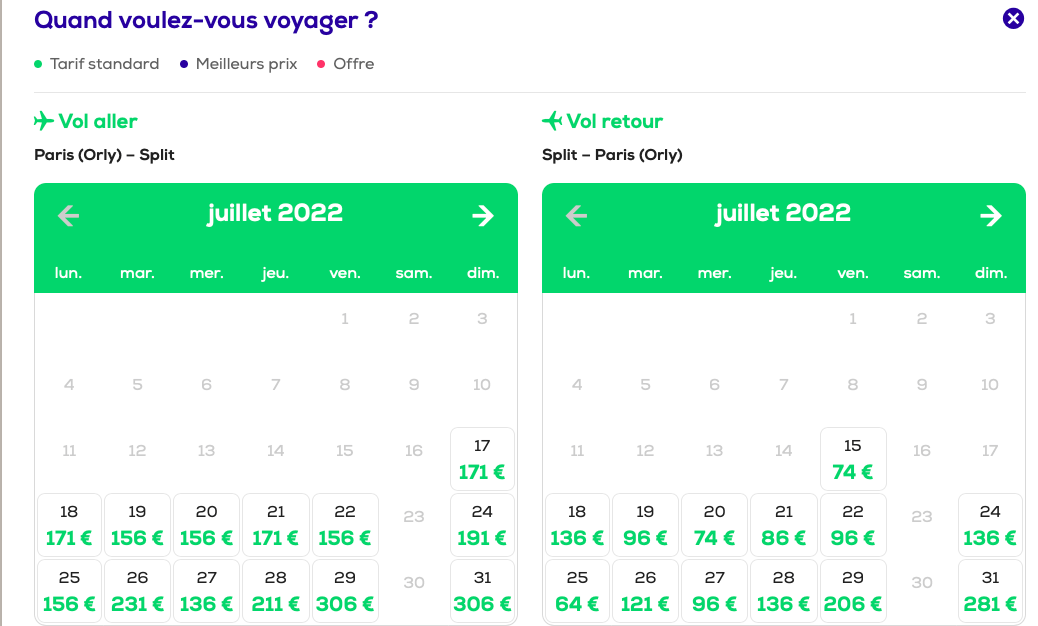 Pour le Paris- Zadar, vous avez un prix, mais pas la date đ€Ł !