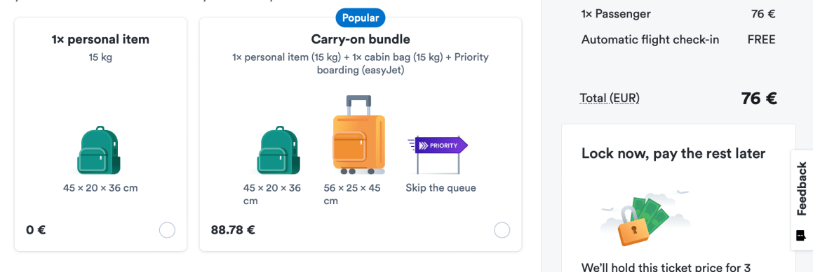 Certains comparateurs facilitent toutefois la tĂąche comme Kiwi.com. Dans cet exemple, il prĂ©sente d’une façon rapide et simple les options d’un vol easyJet :