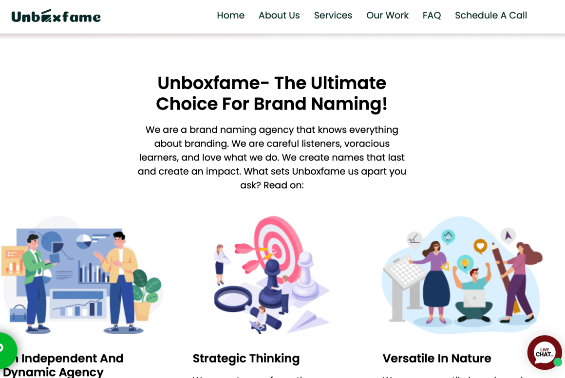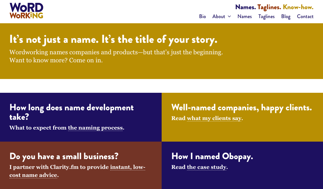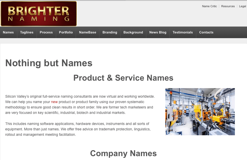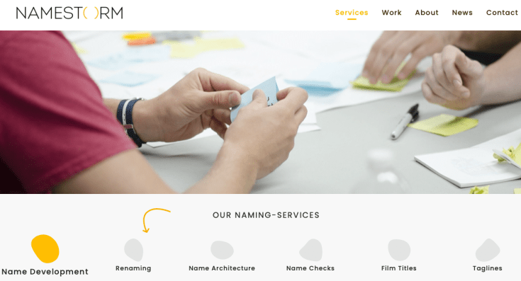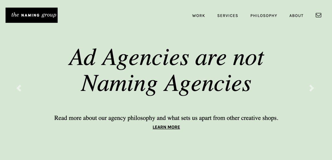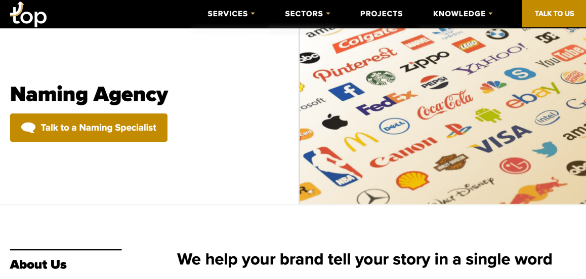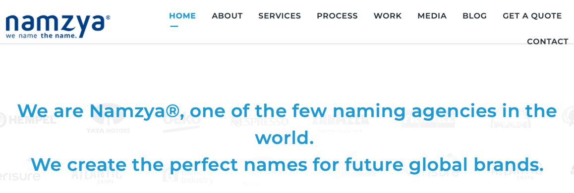 Les agences qui ne font que du Naming sont peu nombreuses dans le monde. Nous privilĂ©gions d’ailleurs dans le portfolio celles dĂ©diĂ©es, car nombre d’entreprises sont en fait des agences de marketing, de publicitĂ©s, de branding ou encore digitales qui l’intĂšgrent frĂ©quemment comme un sous-produit. Il est vrai qu’un nom nouvellement créé doit s’intĂ©grer dans un univers aux multiples facettes et implications et dont il faut aussi tenir compte pour la suite des opĂ©rations ! Exemple des services d’une agence canadienne qui fait aussi du Naming…