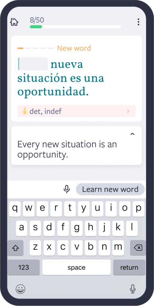 Lingvist s’appuie sur le principe des « cartes » avec des mots ou des phrases, leur traduction et prononciation. Trois options d’interface et fonction avec Apprendre, lire et écouter. Les séries s’appellent des paquets ou des decks. La base de mots peut aller de 1000 à 20000 unités. Vous les choisissez et gérer votre apprentissage en toute liberté. Vous pouvez aussi créer vos propres paquets !