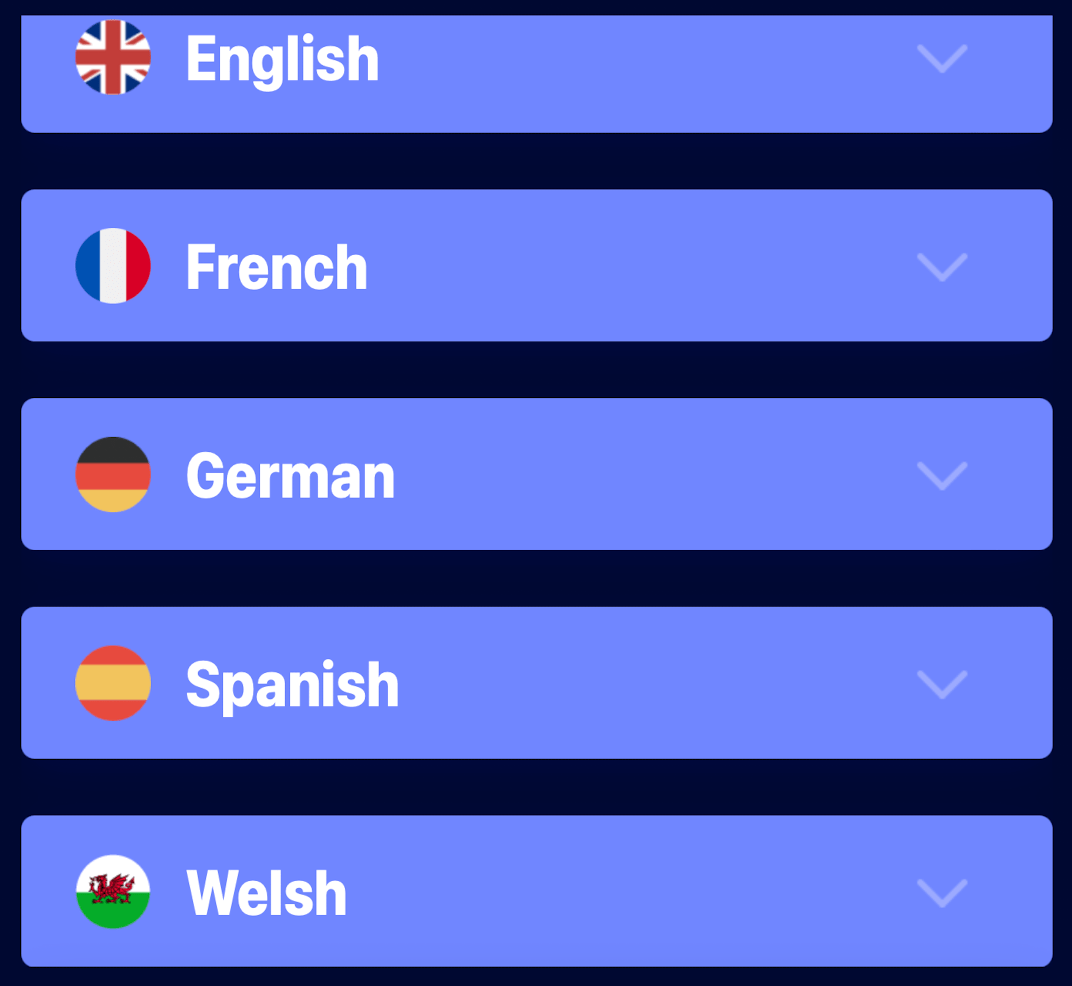 Aux langues classiquement proposĂ©es s’ajoute curieusement le Welsh (avatar sĂ»rement de l’un des auteurs).