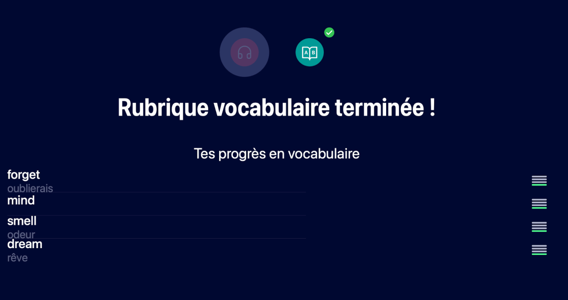 - La liste du vocabulaire dans la rubrique « rĂ©compenses »