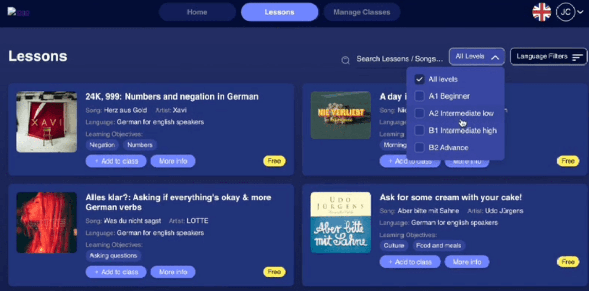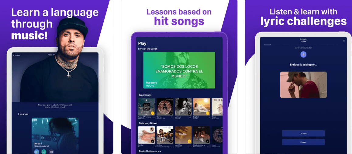 La motivation Ă©tant le moteur numĂ©ro d’un apprentissage longue distance, un truc bien connu des apprenants de langues, l’idĂ©e de l’usage de chansons pour apprendre une langue a Ă©tĂ© reprise pour cette application dĂ©diĂ©e.