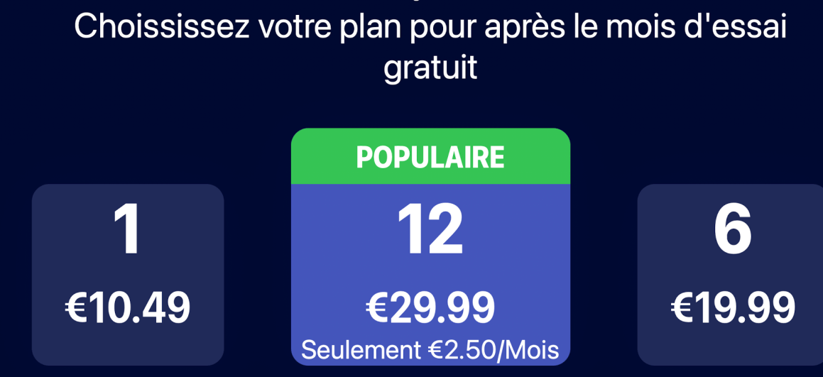 Une certaine confusion rĂšgne entre l’essai d’une semaine gratuite indiquĂ©e en tout petit lors de l’abonnement (dans l’encartĂ©) et le mois d’essai, gratuit lui aussi, affichĂ© en gros…