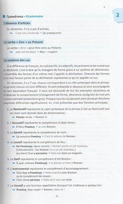 Des explications claires et dĂ©taillĂ©es, mais une bonne densitĂ© de travail vous attend Ă chaque leçon… Un gros et mĂ©ritant travail de pĂ©dagogie pour rendre une grammaire slave digeste (mĂȘme si le contenu choisi reste basique). L’absence des dĂ©clinaisons des pluriels des noms, par exemple, relĂšve du souci de la rendre accessible, mais peut frustrer des apprenants comme ceux ayant dĂ©jĂ appris une langue slave đ