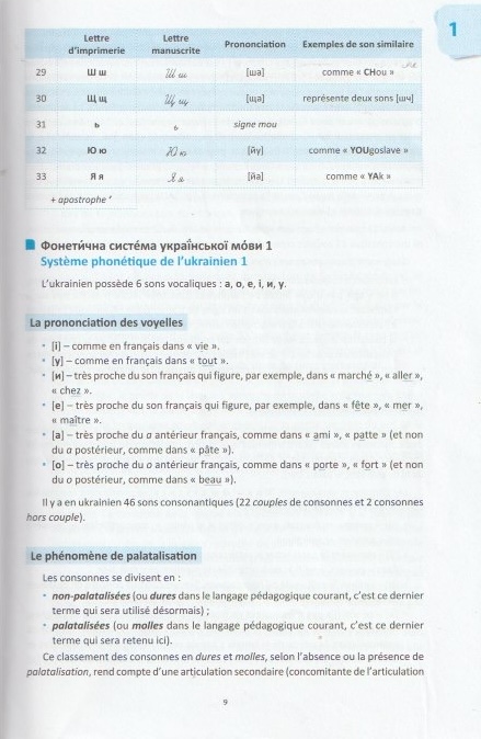 Le livre dĂ©marre avec l’alphabet cyrillique ukrainien qui dispose de quelques lettres supplĂ©mentaires Ă celui du russe. Si la lecture des lettres cyrilliques n’est pas, contrairement Ă la croyance populaire, difficile, l’Ă©criture est plus complexe et en particulier les diffĂ©rences entre capitales et manuscrites… Il est conseillĂ© d’acheter un cahier d’Ă©criture (du russe Ă©ventuellement car plus facile Ă trouver) pour s’entraĂźner car les tracĂ©s ne sont pas indiquĂ©s. On peut toutefois faire l’impasse sur ce point pour une premiĂšre initiation car les capitales sont majoritairement utilisĂ©es dans l’ouvrage…