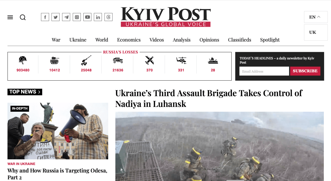 Une ressource en ukrainien ou anglais, ce journal en ligne: