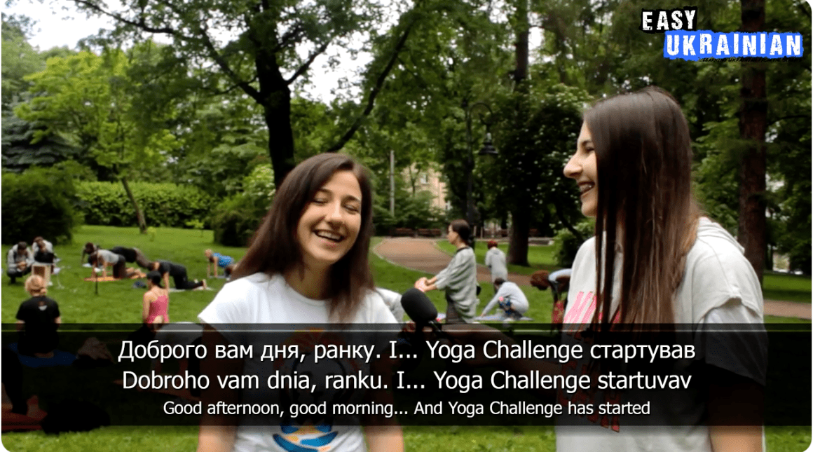 Pour l’Ă©coute et la pratique du vocabulaire, les chansons ou des sites YouTube comme Learning Ukrainian from the street sont trĂšs efficaces et plaisants.Exemple du cours de yoga en plein air: