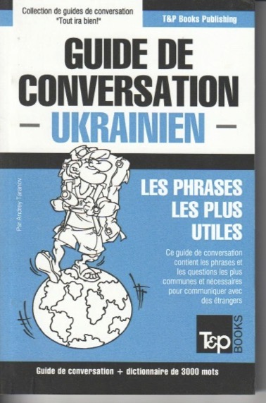 Un guide de conversation franco-ukrainien qui a le mĂ©rite d’exister. Bien fait, il a malgrĂ© tout un gros dĂ©faut, la taille des caractĂšres trop petite pour une lecture confortable… Nous scannons pour un agrandissement! 3000 mots en font une base sĂ©rieuse de vocabulaire en contexte.