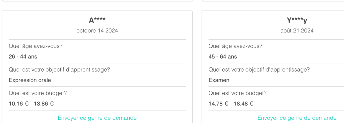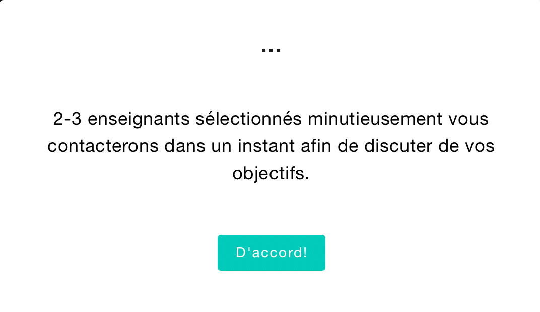 La plateforme est proactive et vous aurez, en plus, droit Ă des messages la nuit sur votre mobile… Notre recherche pour un prof d’ukrainien a aboutie Ă une collection de messages (comme ci-dessous) de la part de l’algorithme. Le truc est qu’il n’y avait pas de cours d’ukrainien…